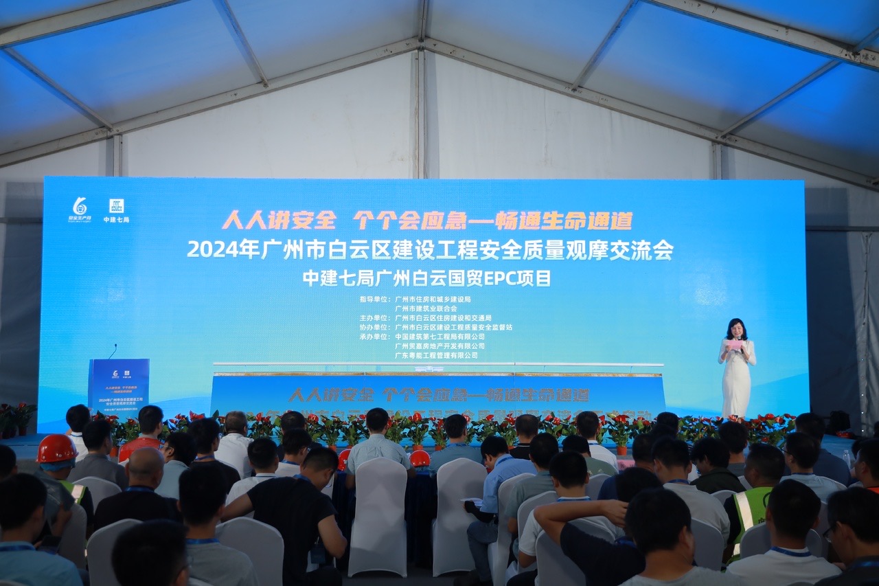 6月28日上午,由廣州市住房和城鄉建設局、廣州市建筑業聯合會指導,廣州市白云區住房和城鄉建設局主辦,中建七局承辦的廣州市白云區建設工程安全質量觀摩交流會,在中建七局廣州白云國貿EPC項目成功舉辦。各相關部門、行業協會、施工企業負責人及同行300余人參加觀摩活動。