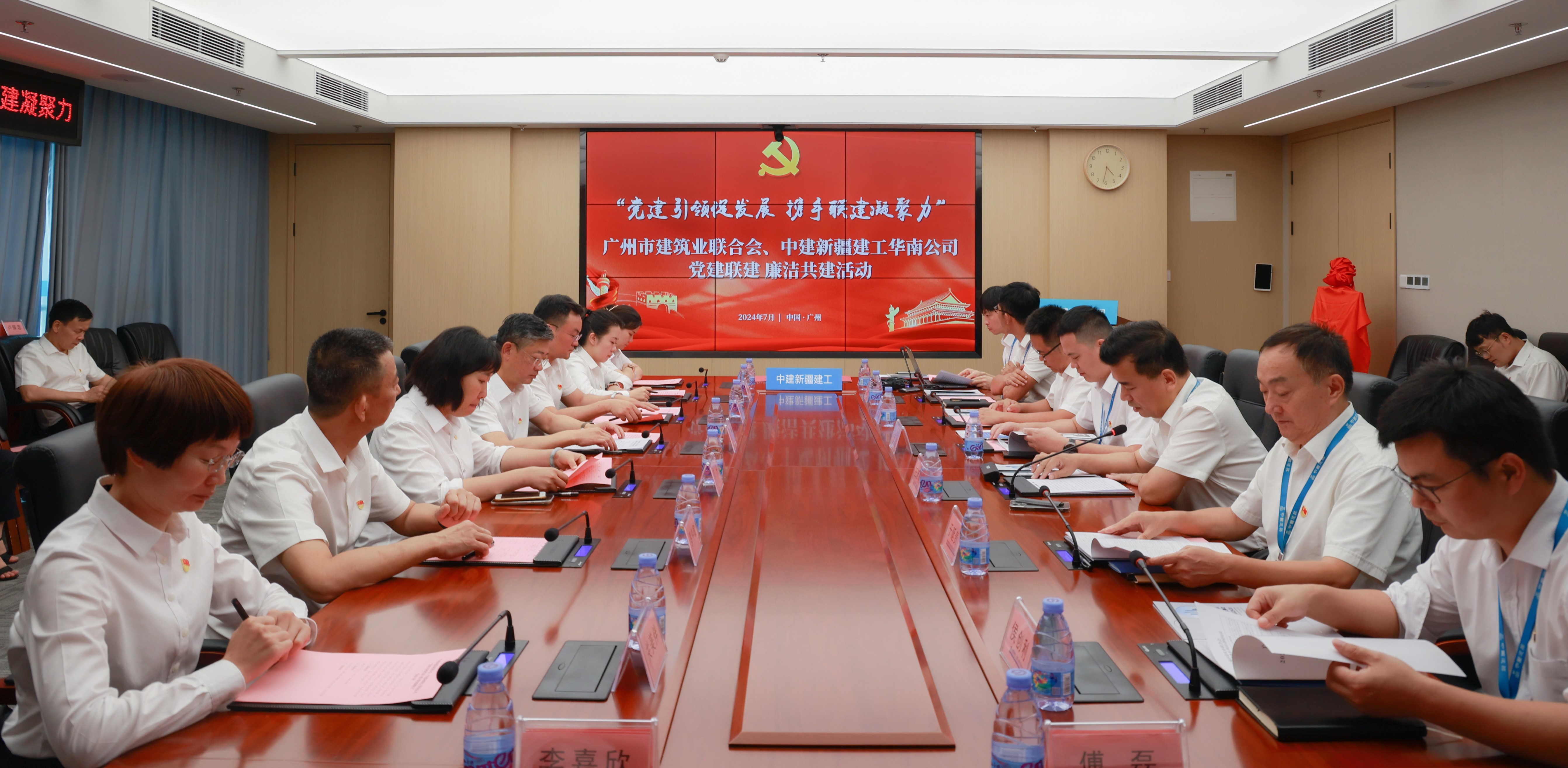 為全面學習習近平新時代中國特色社會主義思想,深入貫徹落實黨的二十屆三中全會精神,加強黨的建設工作,推進基層黨建提質,我會與中建新疆建工華南公司開展“黨建引領促發展 攜手聯建凝聚力”黨建聯建、廉潔共建活動,廣州市建筑業聯合會黨支部書記、會長楊青,副會長兼秘書長張江華,副秘書長邵丹,中建新疆建工華南公司黨委副書記、總經理呂嚴偉,黨委副書記、紀委書記、工會主席王西朝出席活動。