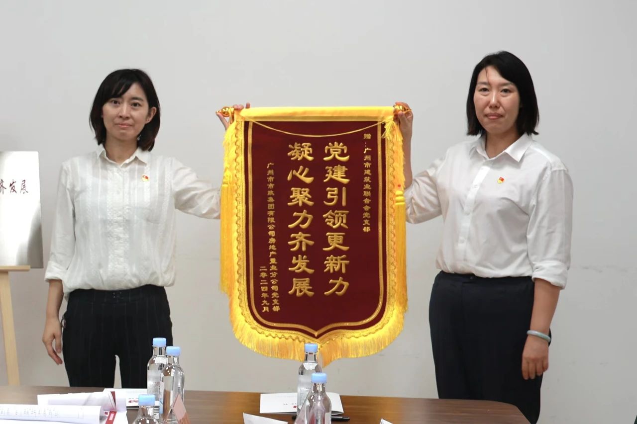 市政房產分公司黨支部委員、副總經理、廣州廣建集團瑤臺城中村改造投資有限公司董事長崔淑敏同志感謝廣州市建筑業聯合會長期以來對公司的支持與幫助,并表示舉辦本次黨建共建既是全面學習習近平新時代中國特色社會主義思想與深入學習貫徹黨紀學習教育的有力舉措,也是鞏固合作關系、實現資源共享、優勢互補、相互促進的有效平臺。期待雙方以此次黨建共建為新起點,深入推進黨的建設與業務發展有機融合,攜手探索發展新方向、新路徑,強化人才交流,共享先進經驗,實現政治優勢與發展優勢的高效互通,共同為廣州市高質量發展貢獻力量。