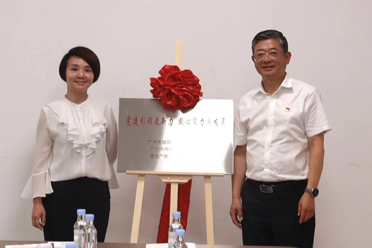 揭牌儀式中,廣州市建筑業聯合會黨支部書記、會長楊青同志與市政房產分公司黨支部委員、副總經理、廣州廣建集團瑤臺城中村改造投資有限公司董事長崔淑敏同志共同揭牌,開啟了合作的嶄新篇章。