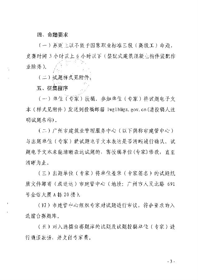 廣州市住房和城鄉(xiāng)建設(shè)局關(guān)于征集第七屆建筑工匠技能擂臺(tái)賽競(jìng)賽工種實(shí)操試題的通知