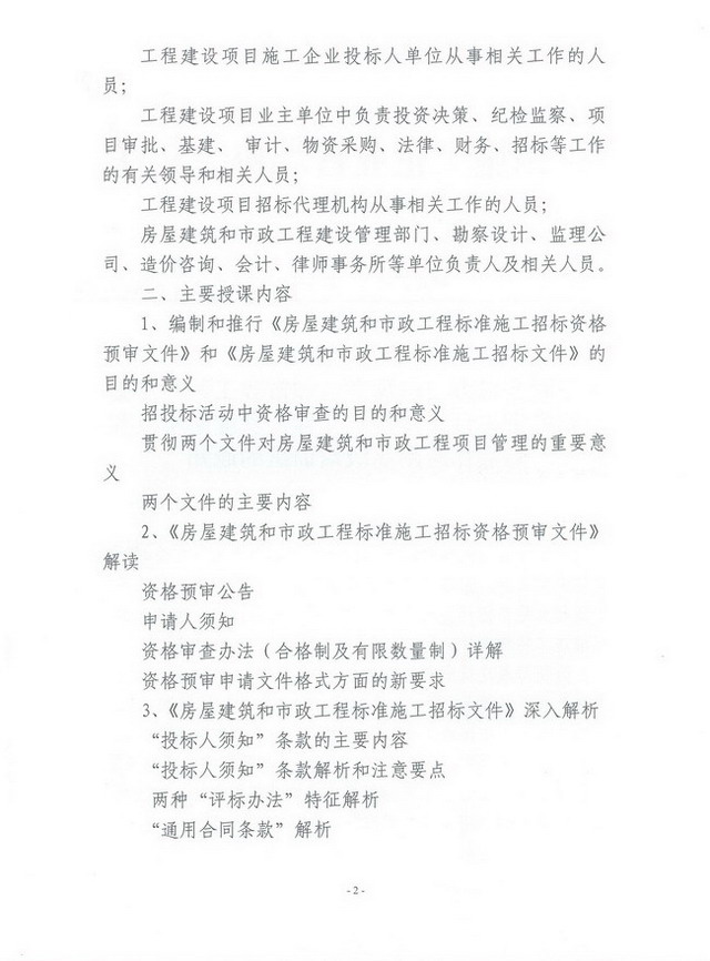 轉發中施企協“關于聯合舉辦《房屋建筑和市政工程標準施工招標資格預審及招標文件》深度解析及實際操作應用高級培訓班的通知”的通知